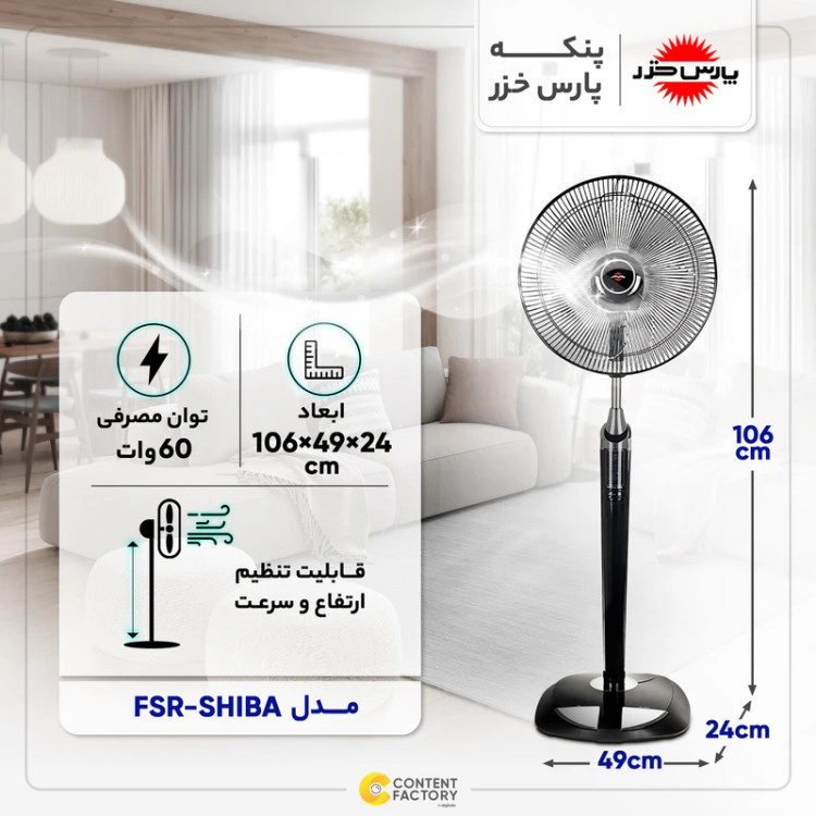 دیدن محصولات مرتبطپنکه پارس خزر مدل FSR-SHIBA یکی از پنکههای ایستاده کاربردی و با کیفیت از برند پارس خزر است که با کیفیت ساخت مناسب و قیمت مقرون به صرفه، محبوبیت بالایی میان کاربران پیدا کرده است. قابلیت تنظیم ارتفاع در این پنکه، امکان گردش هوا در محیط خانه و محل کار را برای تعادل هوا فراهم میکند. پنکه پارس خزر مدل شیبا با امکان تنظیم سرعت چرخش پرهها در ۶ سطح مختلف، کنترل از راه دور به کمک ریموت و تنظیم تایمر برای روشن و خاموش شدن در زمان دلخواه توانسته است بخش عظیمی از بازار خرید این محصول را به خود اختصاص دهد.
